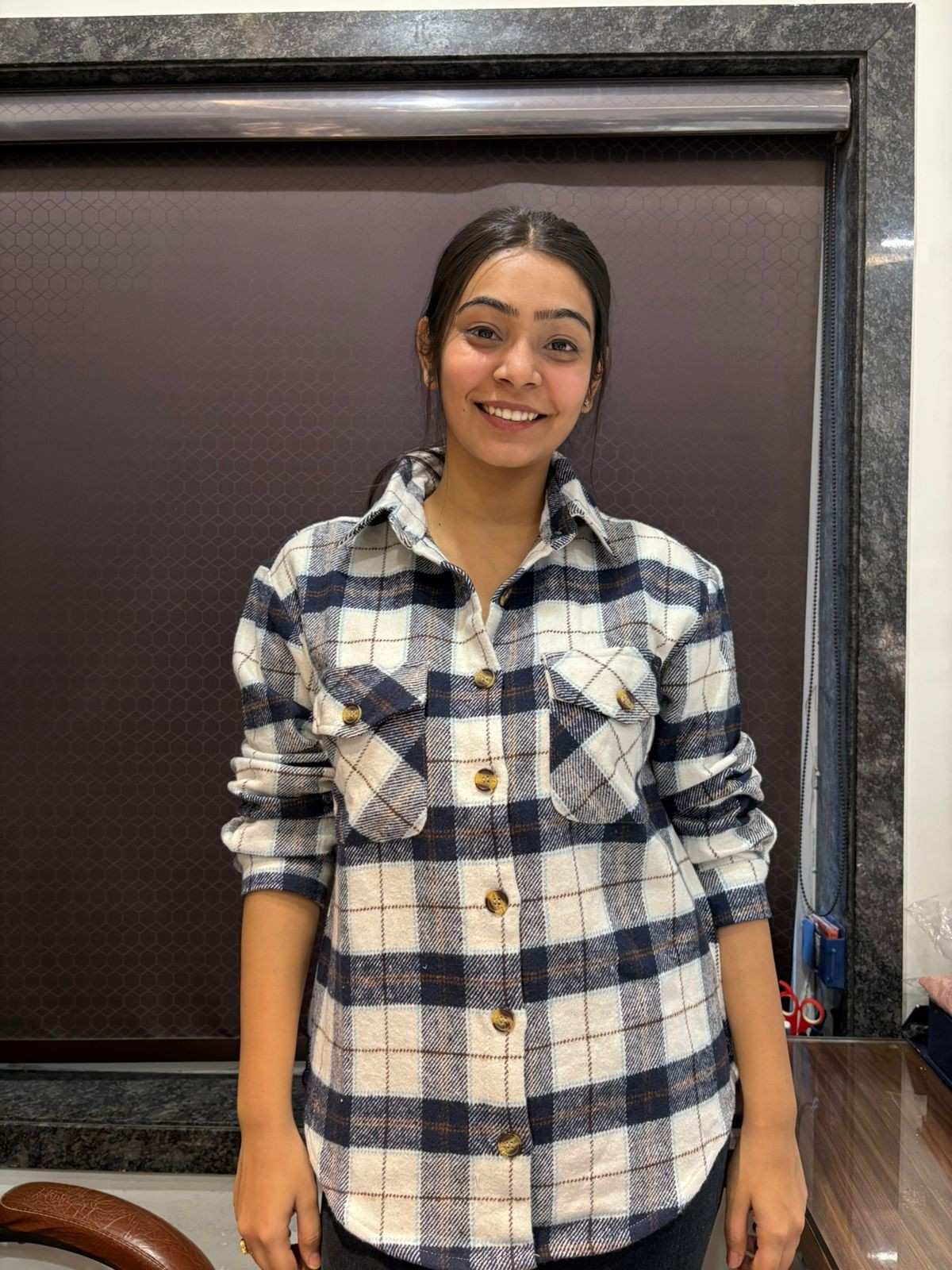 A stylish woolen checked shacket that blends the warmth of a jacket with the ease of a shirt. Soft, cozy, and perfect for layering in cooler seasons.
