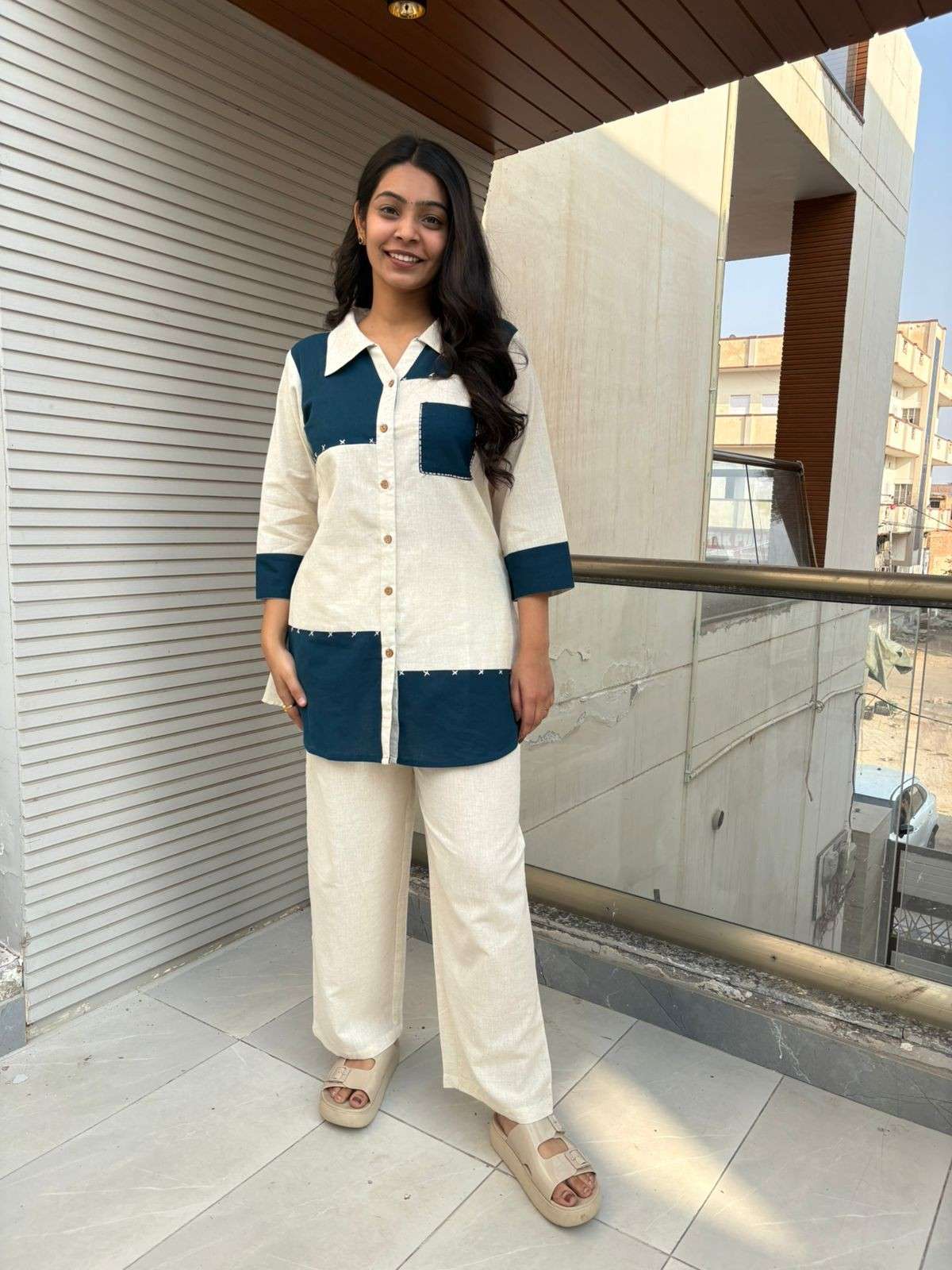 Elevate your everyday look with this stylish cotton flex co-ord set, highlighted by dual shade detailing and a classy Chinese collar. Designed for comfort and effortless elegance, it’s perfect for office wear, casual outings, or day events.