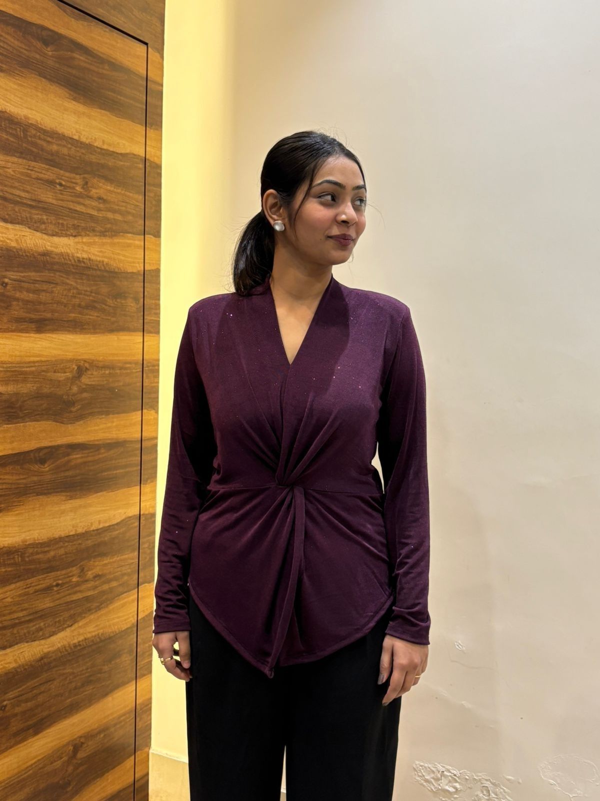 Turn heads effortlessly with this chic glitter lycra front knot top designed to add the perfect sparkle to your look. The stylish front knot detail enhances the silhouette, making it ideal for casual outings, office parties, brunch dates, and evening dinners. Pair it with denims, skirts, or trousers for an instantly glam vibe.