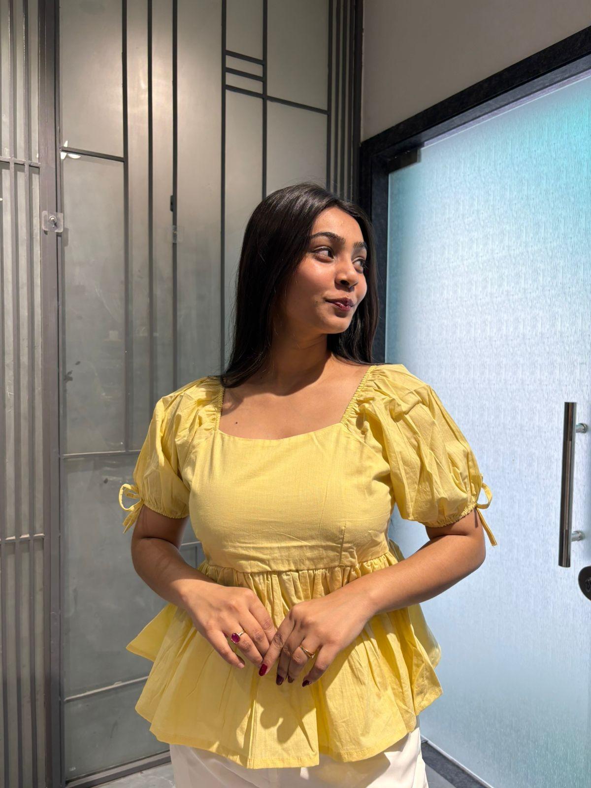 Stylish cotton peplum top designed to give a flattering and feminine silhouette. Made from soft and breathable cotton fabric, perfect for everyday comfort while keeping your look chic and effortless.