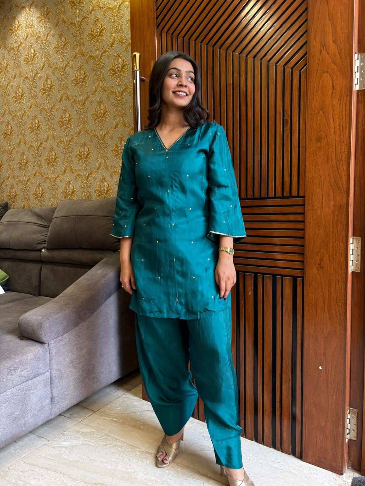 Shabnam Teal silk coordset
