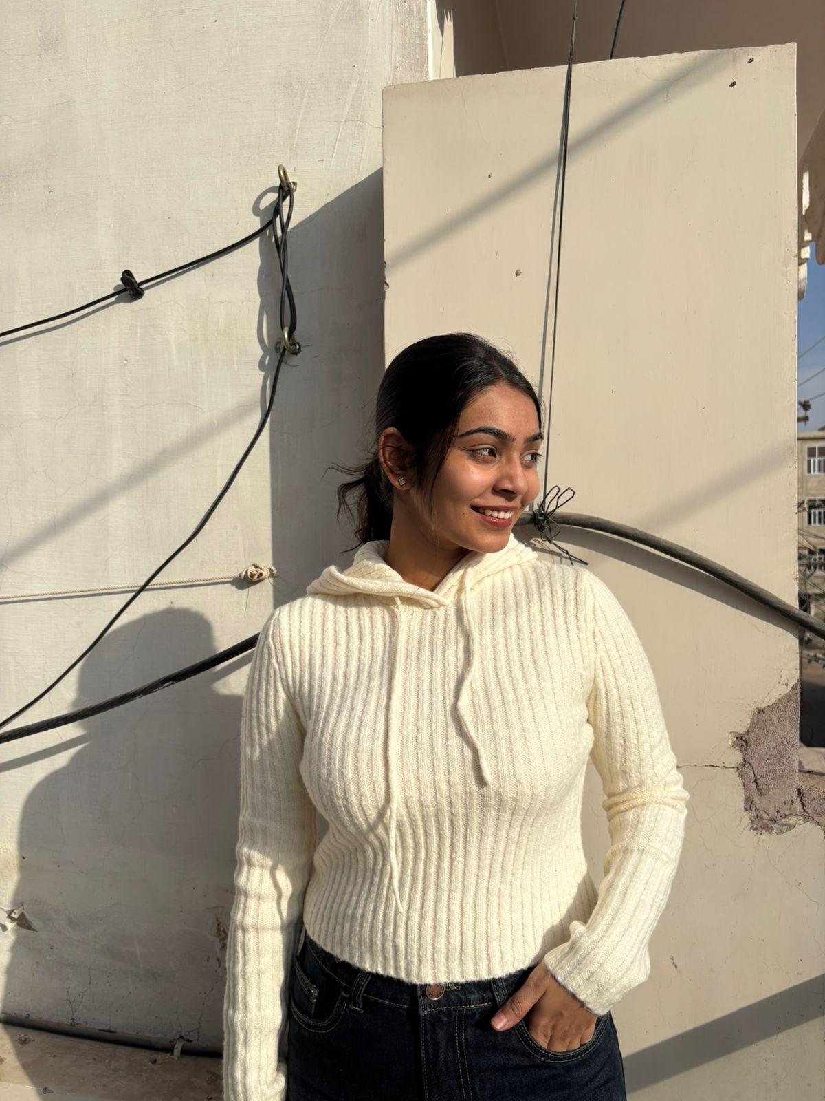 A cozy woolen short hoodie designed for warmth with a modern, cropped silhouette. Soft, stylish, and perfect for creating effortless winter looks.